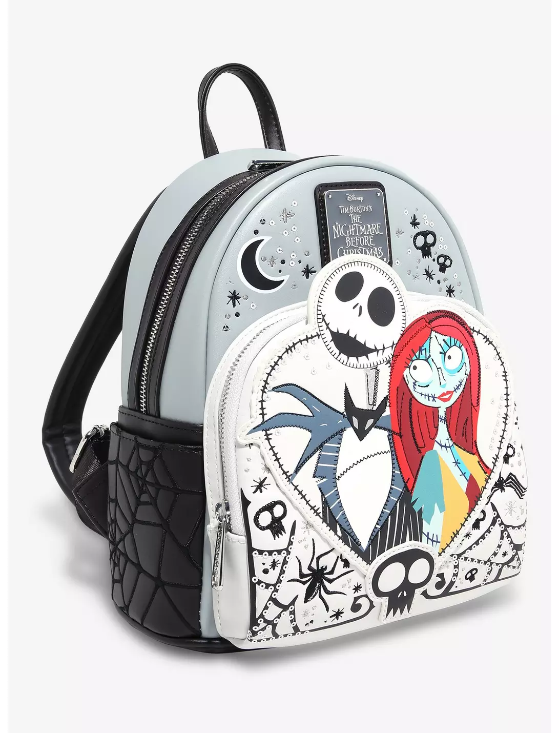 Plongez dans l’univers envoûtant de L’Étrange Noël de Monsieur Jack avec ce mini sac à dos Loungefly qui met à l’honneur le couple iconique Jack et Sally, entourés de symboles effrayants et romantiques.